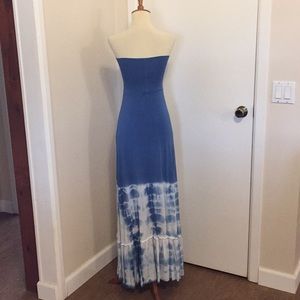 This is a brand new LOVE TANJANE dress. Can be worn as a strapless dress or a maxi skirt with fold over waistband. Soft and stretchy material. Intentionally raw edges. Measures 13 inches across the bust and is about 52 inches in length. Made in southern california and hand dyed. Price is firm. Thanks for looking.