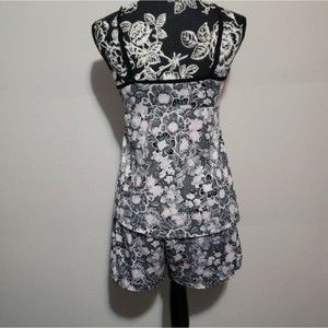Super Cute Sleepwear set intimate Baby doll like v neck tank top shorts floral flower allover print trim bow accents