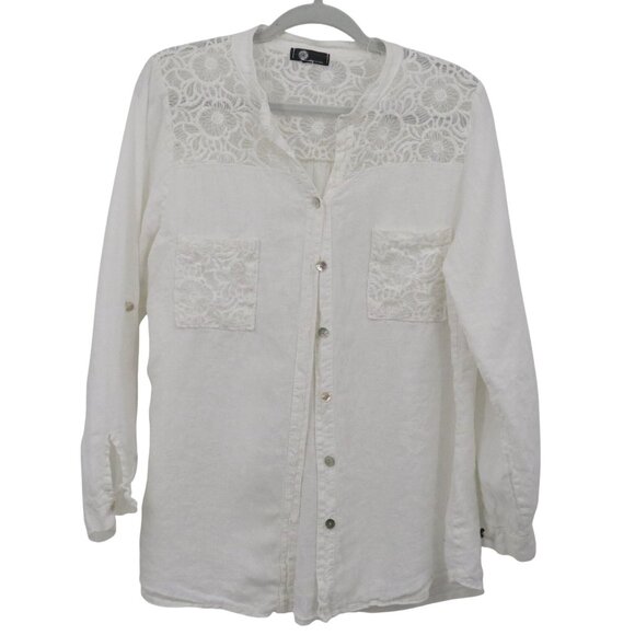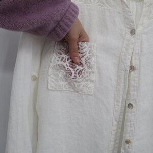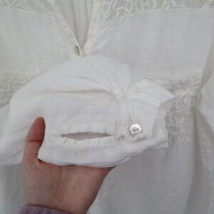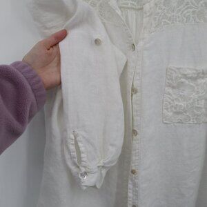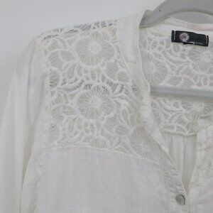 M Linen Top Women 2X White Boho Romantic Prep Classy Feminine Delicate Ethereal