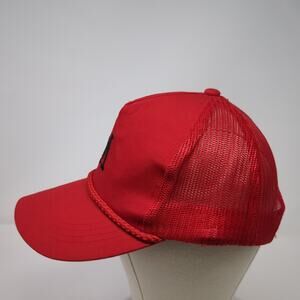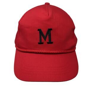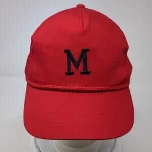 M Logo Snapback Trucker Hat Red One Size Adjustable Embroidered Rope Yupoong