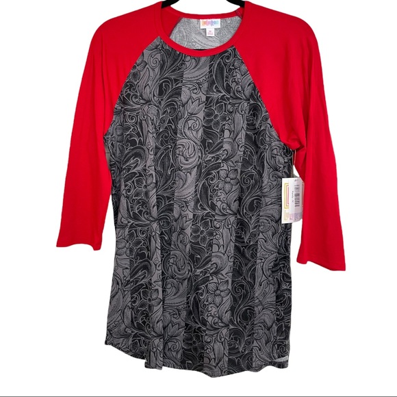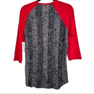 Gray on gray pattern on body with red 3/4 sleeves