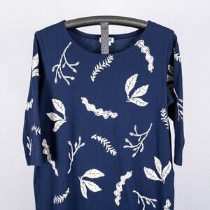 M MAC Botanical Print Shift Dress Blue LARGE Earthy Leaf Boho Casual Lagenlook