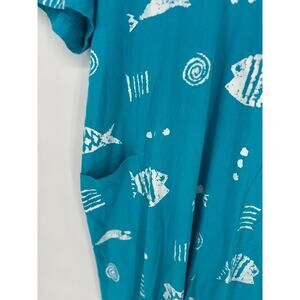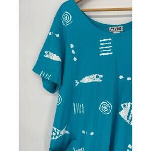 M MAC Rock Fish T Shirt Dress Women 1X Knee Aqua Summer Beach Resort Lagenlook