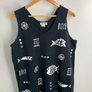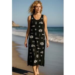 M MAC Vintage Art Animal Fish Maxi Dress Medium Vermont Coastal Nautical Cotton