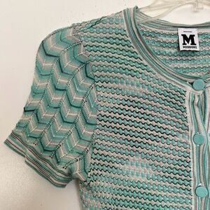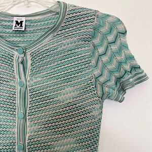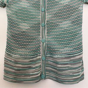 M MISSONI Cardigan Sweater Chevron Waffle Knit Button Front Top Mint Green IT 46 US 10