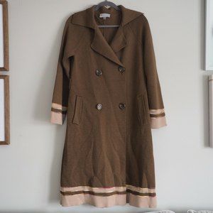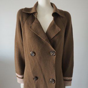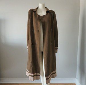 M MISSONI ITALY Long Brown Double Breasted Merino Wool Cardigan Coat Jacket 8