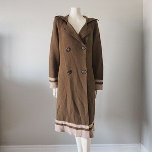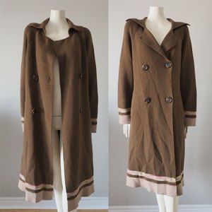 M MISSONI ITALY Long Brown Knit Double Breasted Wool Cardigan Coat Jacket 8