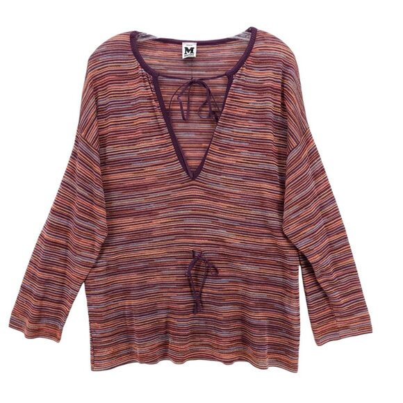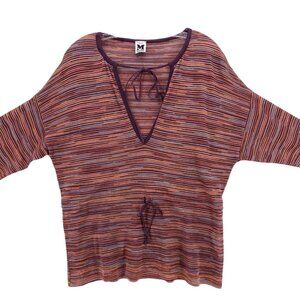M MISSONI Knit Top Striped Pullover Drawstring Cotton Blend Made in ITALY Size 2