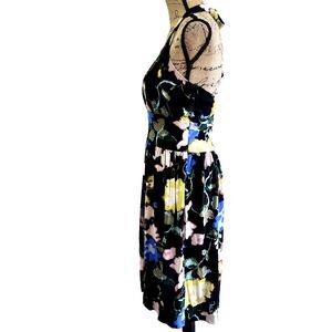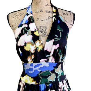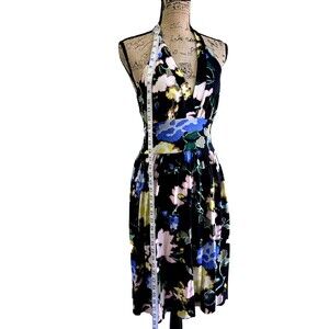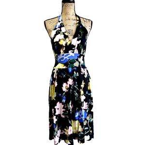 M MISSONI Silk Mini Dress SZ 8 Black Floral Print Knit Jersey Halter Neck