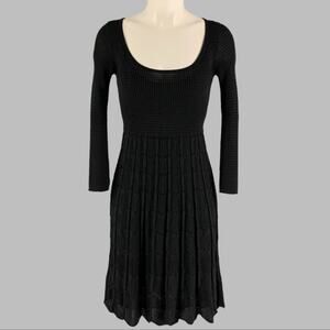 M MISSONI 3/4 sleeve A-line dress in a black fabric knit and removable slip lining. Made in Italy.