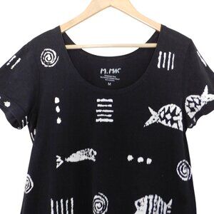 M Mac Rock Fish Midi Dress Womens Black & WhiteHand Printed Cotton Knit Medium