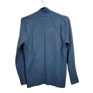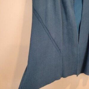 M Magaschoni | Open Front Ribbed knit Sweater Cardigan Teal Blue