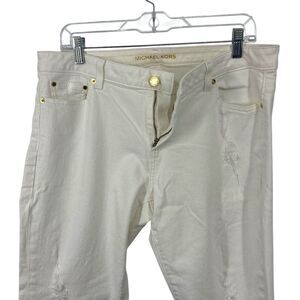 M Michael Kors Dillon Relaxed Ankle Jeans Women size 10 White Destressed Denim