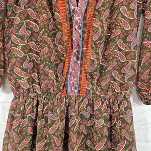 M Midnight Sky Paisley Print Mini Dress Women's Size M Sheer Long Sleeve Green details: