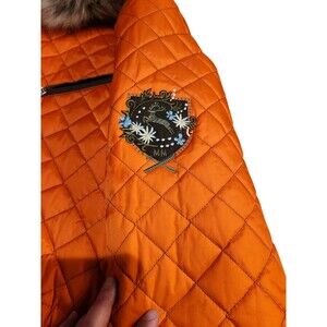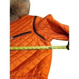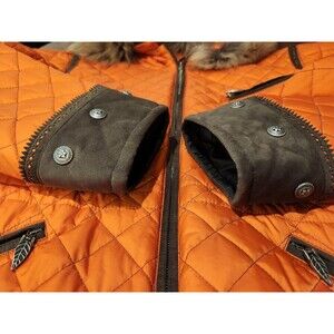 Stay warm and stylish with this M. Miller Skiwear parka jacket for women size XXL. Made with ultrasuede thinsulate insulation and a thermal lining material, this jacket is perfect for winter and fall seasons. The jacket features a full zip closure, hood, and long sleeves with a solid pattern in orange color. It also has various accents such as fur trim, quilted design, embroidered logo, and is lightweight. The jacket has multiple pockets for storage and temperature control with the Weathergear technology. This designer jacket is perfect for outdoor activities and travel, and is a must-have for any ski or western enthusiast.