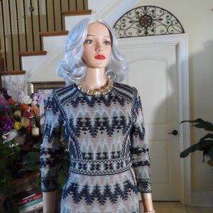 Step out in style with the M Missoni Black-Pink Multi Zig-Zag Print Fit & Flare Dress. This eye-catching piece features a dynamic zig-zag pattern in bold black, pink and multi color hues, bringing a vibrant edge to the classic fit-and-flare silhouette. The long sleeves and round neckline add a touch of elegance, while the knit fabric ensures a comfortable and flattering fit. Perfect for making a statement at any event, this dress is designed for a size 4, offering both sophistication and playful charm. Measurements are approximate: Shoulders 15", bust 33", waist 27", hips 36", length of sleeves 24.5", overall length 37". Fabric and size tags are missing otherwise in very good pre-own condition. Comes from a smoke free home.