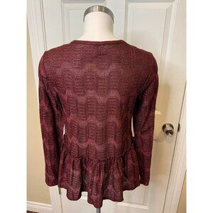 M Missoni Burgundy Metallic Long Sleeve Top, Size Small