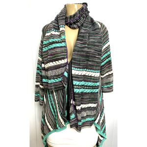 M Missoni Cardigan Sweater Open Draped Metallic Aqua Blue Scarf Striped …
