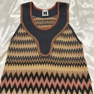 M Missoni Knit Dress Metallic Chevron Size 4 Shimmer Sleeveless Y2K Vintage