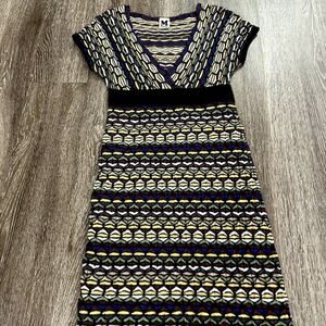 M Missoni Multicolor Geometric Knit Dress Size 4 Sleeveless Merino Wool Italy