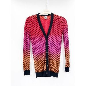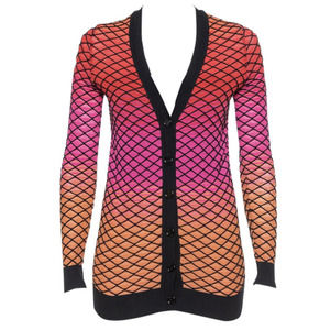 M Missoni Ombre Pink Criss Cross Knit V-Neck Button Front Cardigan Sweater