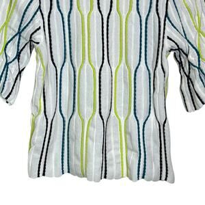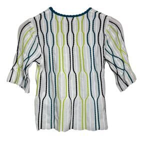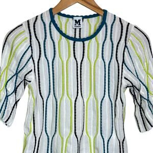M Missoni Size 40 US Small White Blue Green Ruffle Sleeve Knit Top