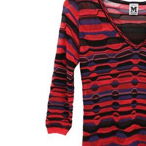 M Missoni Striped Crochet Knit 3/4 Sleeve V-Neck Dress 42 ~ US 4