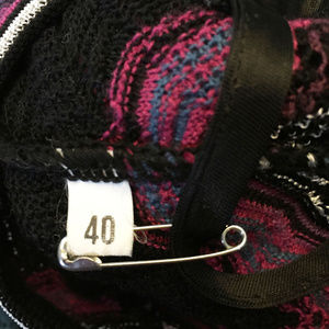 Beautiful dress with v-neck and gathered long sleeves in bright shades of turquoise and plum. Has Missoni's classic zigzag weave. Cotton viscose blend is lightweight and stretchy. Comes with a solid black slip liner. No stains, pilling, pulls, snags or other issues. Really gorgeous! Size IT 40 (US 4)