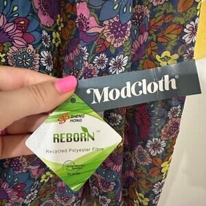 M ModCloth Blue Paisley Bow Neck Tie Long Sleeve Blouse NWT