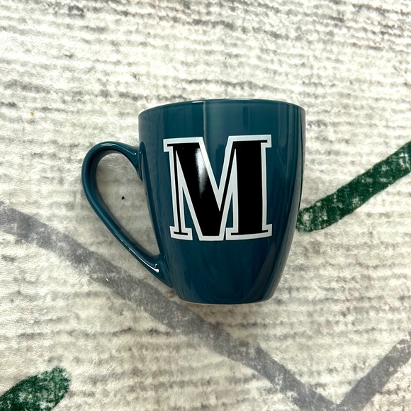 double sided “M” mug, never used faded blue jean type of blue
