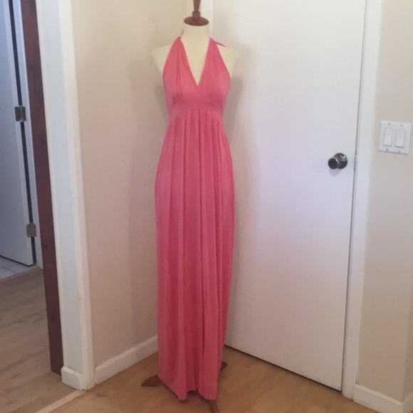 This is a brand new LOVE TANJANE halter dress. Soft and stretchy material. Intentionally raw edges. I am not sure how I would give meaningful measurements due to the open back and adjustable length due to being able to alter where it is tied in the back. I will mention though, that this fits true to size and my mannequin is currently set to a height of 5'6. Made in southern California and hand dyed. Price is firm. Thanks for looking.