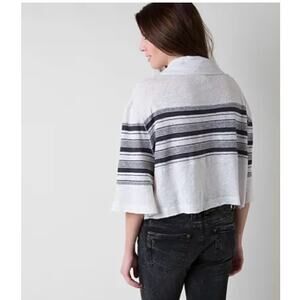 (M) NWT $98 Free People Sea Side Linen Slub Top in Nautical Combo Blue White