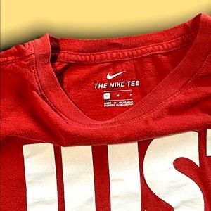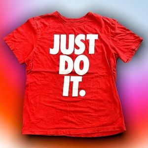 (M) Nike Tee Front Print “Just Do It”. Armpit to armpit: 20.5 inches Back collar to hem: 26 inches. Preowned wear and tear, please see pictures (zoom in/ out) for details before purchasing.