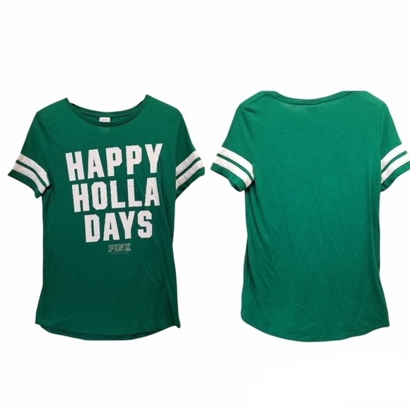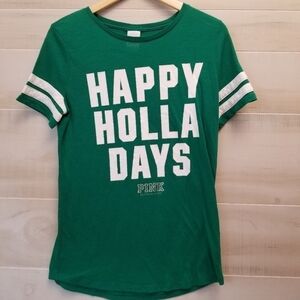{M} PINK VS Happy Holla Days Christmas Jersey Tee