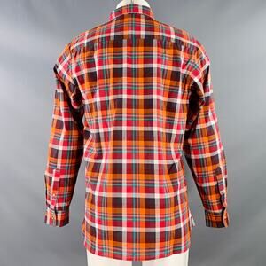 M Red Multi Color Plaid Cotton One Pocket Button Down Collar Long Sleeve Shirt