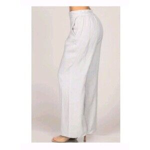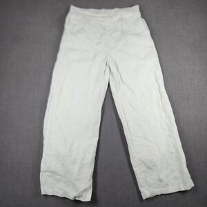 M Rena Linen Pants Women's Sz Large Blend Wide Slit Leg Distressed Look USA Made