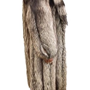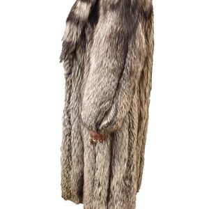M. Soloman / NYC furrier - Brown/gray, 100% genuine silver fox fur long, full length coat. Classic "luxe" style and design