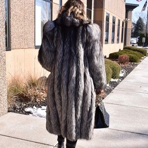 M SOLOMON: 100% Genuine Silver Fox Fur Long Coat