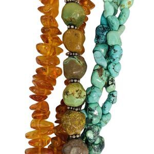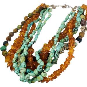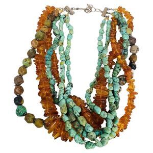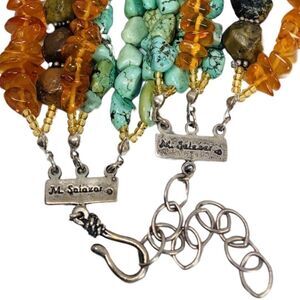 M Salazar Amber Turquoise Necklace 19" 925 Sterling Silver Native American Heavy