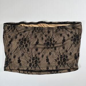 M Shein Icon Black Lace Bandeau Tube Top Womens Size S NWT Floral Tan Layering details: