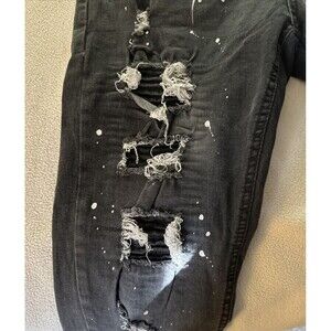 M Society Distressed Ribbed Ripped Paint Skinny Jeans Men's Size 38x32 Black