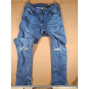 M Society Mab City Jeans Men 36x32 Blue Distressed Stretch Denim