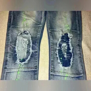 M. Society Mens Jeans Size 34x32 Skinny Fit Distressed Grunge Hip Hop B0060