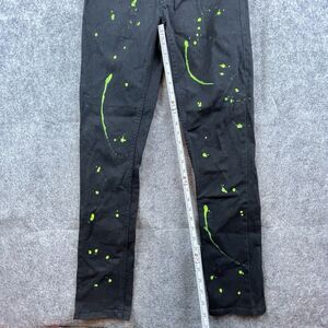 M Society Politically Incorrect Jeans Mens 32 Skinny Black Green Paint Splatter