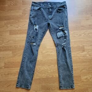 M Society Politically Incorrect Jeans Mens Size 34x32 Black Distressed Patched