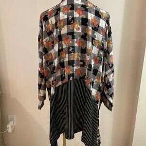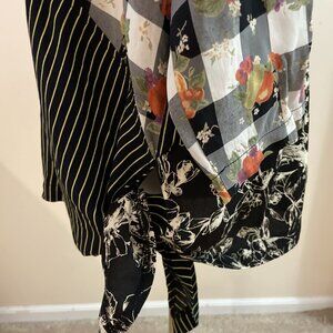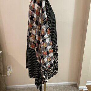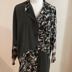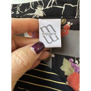 M Square Patchwork Top Tunic Women's XL Black Multi Button Front Oversized Boho
