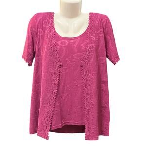 M Street Women's Fushia Front Button Closure Cutout Detail Layered Top Size L
