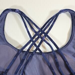 Stay comfortable and stylish with this purple blue patterned sports bra. Perfect for workouts or casual wear.