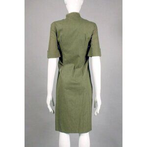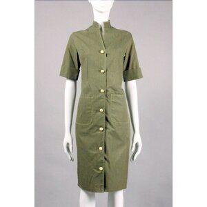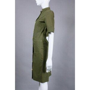 M Vintage 1960s Kenny Olive Green Shift Dress Button Up Cotton Pockets Mod 60s