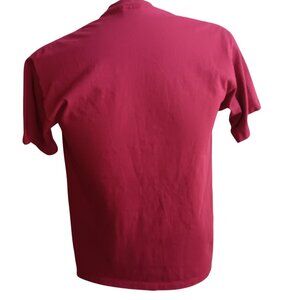 Step back in time with this vintage 1980s men's tee. Featuring a classic single stitch design and a unique small town bar graphic, this medium-sized T-shirt is perfect for retro enthusiasts and casual wear.